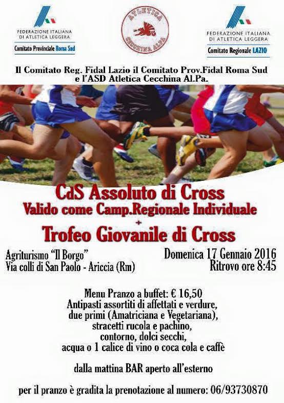 Torna il Cds di Cross. La manifestazione, organizzata dalla Federazione Italiana di Atletica Leggera – Comitato Regionale Lazio e Federazione Italiana di Atletica Leggera – Comitato Provinciale Roma Sud e dall’Associazione Sportiva Dilettantistica “Atletica Alpa Cecchina”, avrà luogo domenica 17 gennaio, presso l’agriturismo il Borgo, in via Colli di San Paolo – Ariccia.