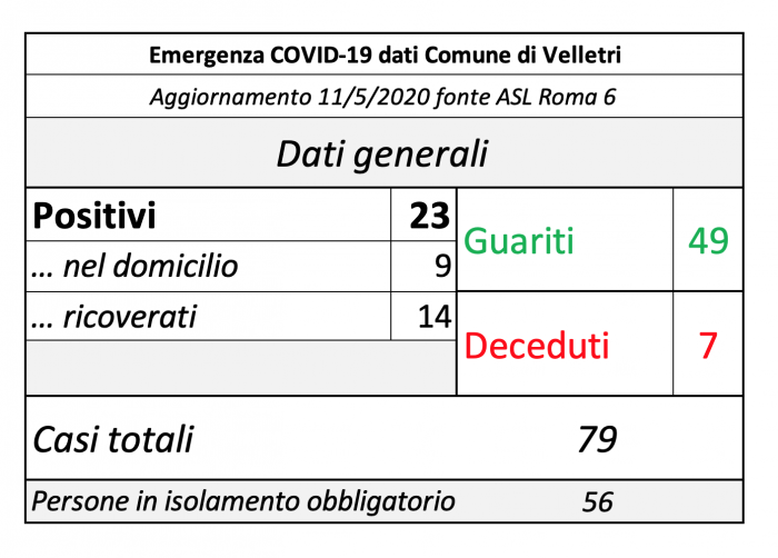 Sempre 23 i positivi al Coronavirus veliterni, ma aumentano i domiciali e scendondo i ricoverati. Lo riferisce nel diario il sindaco Pocci