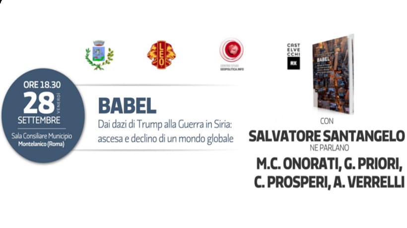Venerdì 28 settembre 2018 alle ore 18:30, presso la sala consiliare del Comune di Montelanico, Salvatore Santangelo presenterà il suo ultimo libro, Babel.
