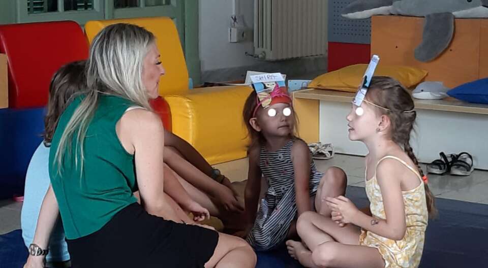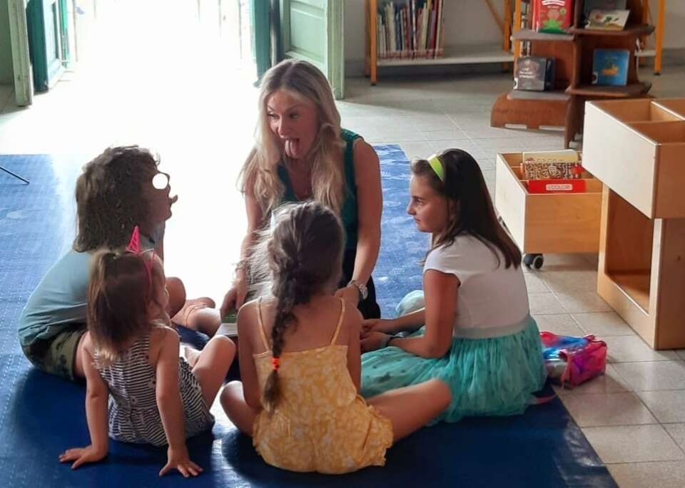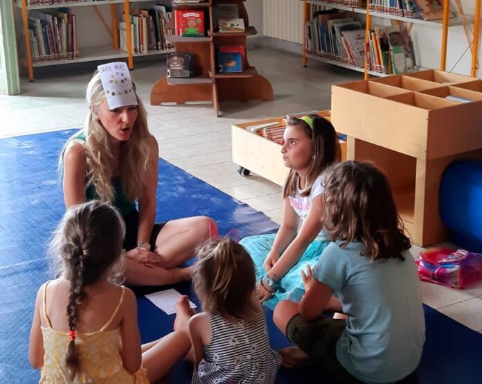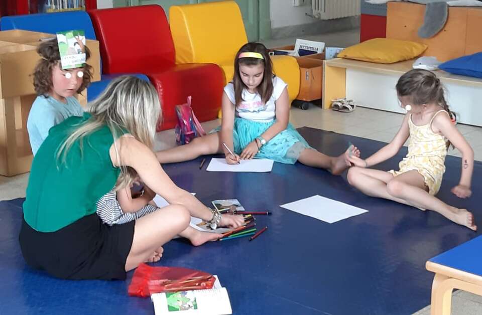 Morena Mancinelli ha letto alcuni brani del libro invitando i piccoli partecipanti a cimentarsi nelle attività che svolgono le protagoniste e i loro amici: salti, giochi semplici come “Color color” o “Chi sono?!” in cui la scrittrice, dopo essersi messa sulla fronte l’illustrazione di un personaggio del libro senza vederlo, ha indovinato di chi si trattasse grazie ai bambini che potevano rispondere alle sue domande solo con ‘sì o no’.