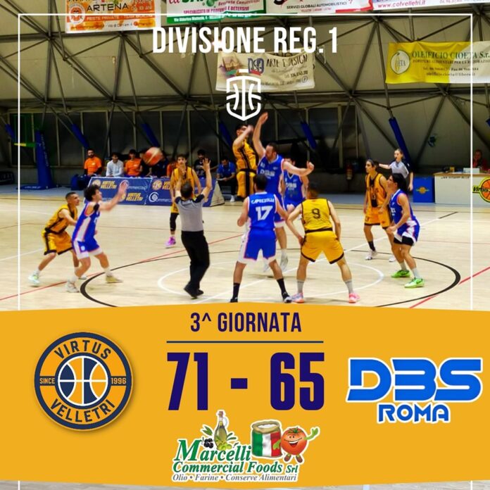Ritorna in campo la Virtus dopo la giornata di sosta, primo quarto con ritmi molto elevati, parte meglio la Virtus ma sul finire del quarto DBS recupera e chiude sopra di 1. Secondo quarto sulla stessa riga del primo, buona difesa della Virtus e supremazia a rimbalzo per DBS che con i secondi tiri resta in partita tanto che a metà partita il punteggio vede 31 Velletri 28 Dbs. Al ritorno dall’intervallo lungo è DBS a prendere un discreto vantaggio grazie a molte rotazioni dalla panchina mentre Velletri sembra stanca giocando male in attacco e difendendo altrettanto male, il terzo quarto si chiude 49 a 57. Il quarto finale inizia come il precedente, DBS va più 10 dopo 3 minuti di gioco. Gli ultimi 7 minuti sono un’altra partita per la Virtus, la difesa torna ad essere aggressiva su tutto il campo e i rimbalzi non vengono più lasciati agli avversari, diversi i canestri da 3 punti, soprattutto con Di Leo. A 4.40 dalla fine Velletri è sotto di 3 60 a 63. In 4 minuti piazza un parziale di 11 a 0 che sposta definitivamente l’inerzia dalla parte di Velletri. Il quarto si chiude con un eloquente parziale di 22 a 8.
