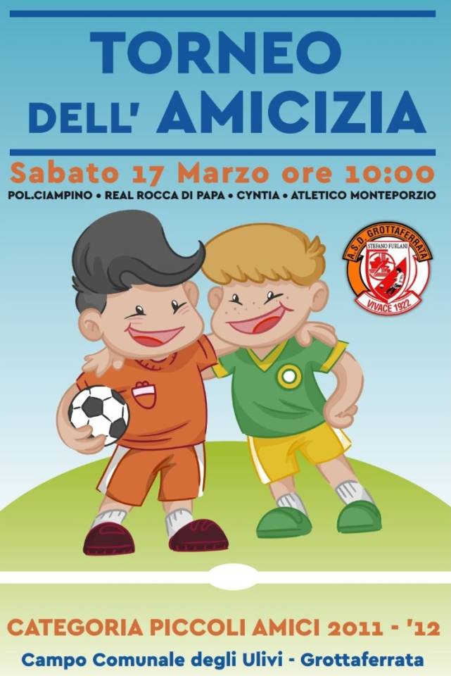 Sabato 17 marzo l’energia dei Piccoli Amici 2011 – 2012 animerà il campo comunale di Via degli Ulivi grazie al Torneo dell’Amicizia, organizzato dall’A.S.D. Vivace Furlani 1922. Cinque le società partecipanti che giocheranno dalle 10 del mattino: Pol. Ciampino, Real Rocca di Papa, Cynthia e Atletico Monteporzio. Della manifestazione ha parlato il Responsabile della Scuola Calcio, Andrea Borsa, motore dell’iniziativa: «Si tratta della quarta manifestazione all’interno di una stagione davvero ricca di eventi ed emozioni. Questo torneo vuole ricalcare quella che è la mission societaria della Vivace Furlani ovvero aggregare e favorire l’amicizia fra i bambini, dirigenti e allenatori. Per noi è motivo di grande orgoglio poter riempire il campo comunale con bambini in festa e gioiosi che si divertono. Vogliamo rendere Grottaferrata il punto di riferimento del calcio nei Castelli Romani». Del torneo ha parlato anche la Responsabile Relazioni Esterne, Michela Palozzi: «Abbiamo voluto questa manifestazione in un momento delicato, in cui il calcio è stato colpito da una tragedia che ha toccato il cuore di tutti noi, ovvero la scomparsa prematura del capitano della Fiorentina Davide Astori. Questo doloroso episodio che accomuna il giovane calciatore al nostro Stefano Furlani a cui dedichiamo ogni nostra iniziativa, ci conferma di nuovo che lo Sport è il maggiore mezzo per aggregare, crescere e migliorare. L’amicizia dunque è sicuramente la prima ed una delle più importanti conseguenze».