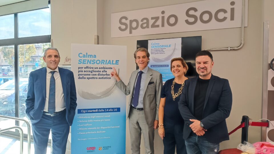 Lo dichiara Massimiliano Maselli (Assessore all’Inclusione sociale e servizi alla persona della Regione Lazio) che ha partecipato all’inaugurazione del progetto “Calma sensoriale”, presso il supermercato Coop di Largo Agosta a Roma, alla presenza di Mauro Caliste (Presidente Municipio V di Roma Capitale), Francesco Barreca (CDA Unicoop Etruria) ed Eleonora Priori (responsabile supermercato Coop Largo Agosta).