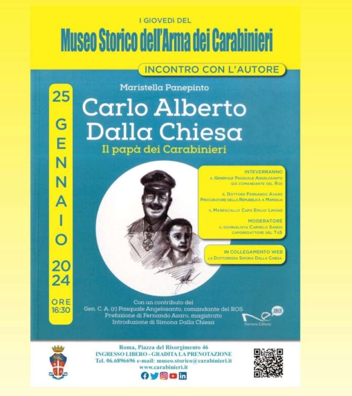 Giovedì 25 gennaio, alle ore 16.30, al Museo Storico dell’Arma dei Carabinieri, si terrà la presentazione del libro “Carlo Alberto Dalla Chiesa, il papà dei Carabinieri” (Navarra Editore) di Maristella Panepinto.