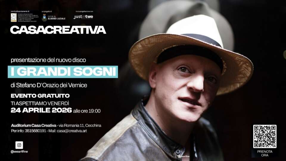 I GRANDI SOGNI, il titolo dell’ultimo album di Stefano D’Orazio dei Vernice atteso in uscita il prossimo 24 aprile e presentato ufficialmente ad Albano Laziale nel cuore dei Castelli Romani.