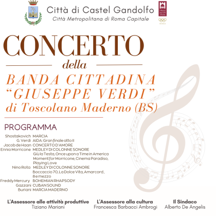 La Banda, che affonda le sue radici nell’800 nascendo sulla sponda bresciana del Lago di Garda, sarà diretta dal Maestro Valter Rosa ed eseguirà un bellissimo programma: dalla Marcia di Shostakovich, al gran finale del II atto dell’Aida di Verdi, per poi passare a grandi ed intramontabili brani firmati dai Maestri Ennio Morricone e Nino Rota e da una delle star indiscusse del rock, Freddy Mercury.