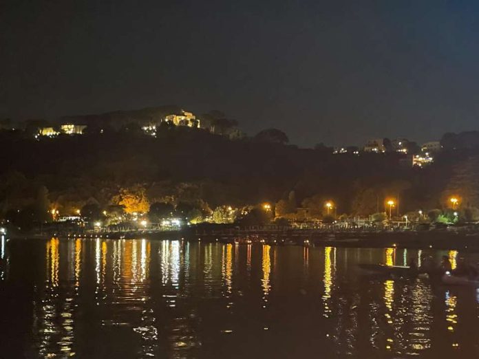 Il battello, seguito da numerose imbarcazioni illuminate e accompagnato da un gruppo di nuotatori, ha navigato le acque tranquille del lago Albano, creando un’atmosfera magica e suggestiva. Raggiunto il punto più distante in corrispondenza del ristorante ‘I Quadri’, proprio a valle dell’ex residenza estiva dei papi, la processione si è diretta verso il molo dello stabilimento ‘Giorgio’s Beach’ per l’approdo.