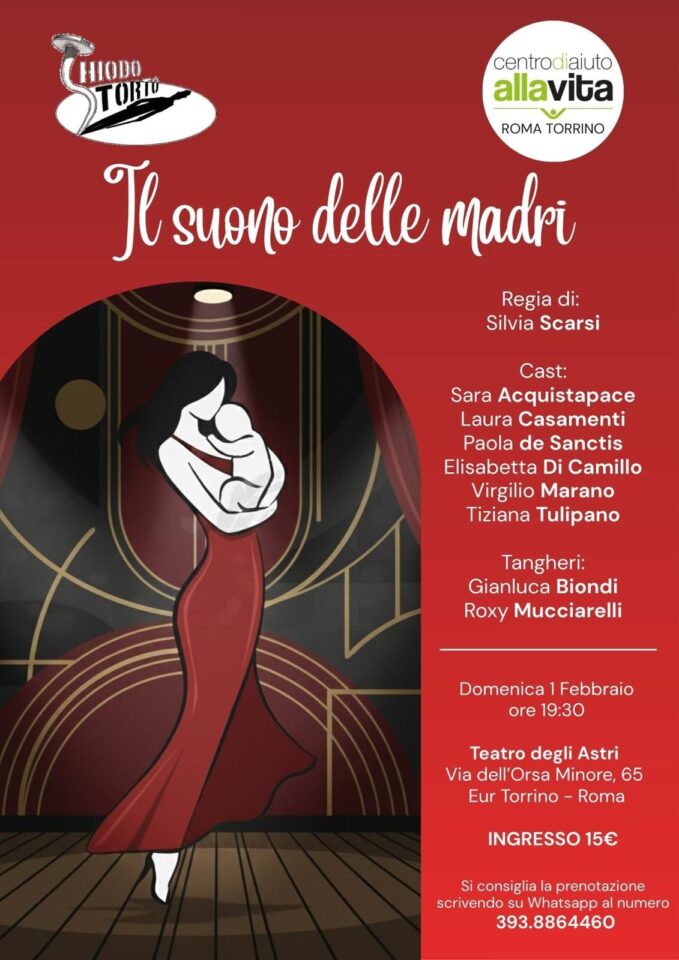 “Il Comitato di Quartiere EUR Torrino sostiene l’iniziativa del Centro di Aiuto alla Vita e vi invita ad assistere allo spettacolo teatrale “Il suono delle madri” della Compagnia teatrale Chiodo Storto, che si terrà domenica 1 febbraio alle ore 19.30.