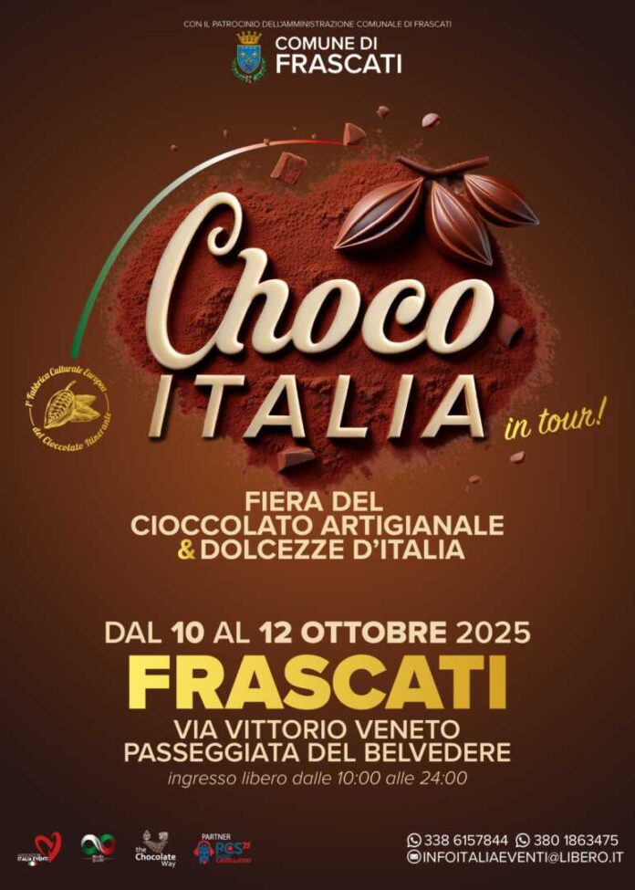 Secondo appuntamento di stagione per Choco Italia che da venerdì 10 a domenica 12 ottobre si fermerà a Frascati, sull’affascinante passeggiata del belvedere. La fiera del cioccolato artigianale e delle dolcezze tipiche italiane proporrà in Via Vittorio Veneto il consueto format che unisce artigiani, produttori ed eccellenze del Made in Italy. Con ingresso libero e gratuito, sarà possibile accedervi dalle 10 del mattino a mezzanotte e degustare prodotti che arrivano da ben 5 regioni italiane.