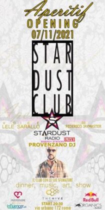 StarDustRadioEnergy Station edita da Christian Marras e Paolo Bolognesi presenta l’apertura di un club ideato per gli ascoltatori della stazione radio omonima, un club di alto livello che intende portare a Roma le sfumature più glamour della musica house grazie ai talenti straordinari delle sue voci; da Christian Marras, a Paolo Bolognesi.. i vocalist più acclamati d’Italia.