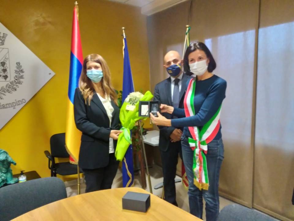 Si è svolto giovedì 22 ottobre 2020, presso la Sala Giunta del Comune di Ciampino, uno storico incontro tra l’Amministrazione comunale di Ciampino, rappresentata dal Sindaco, Daniela Ballico e l’Ambasciatore della Repubblica d’Armenia in Italia, S.E. Tsovinar Hambardzumyan.