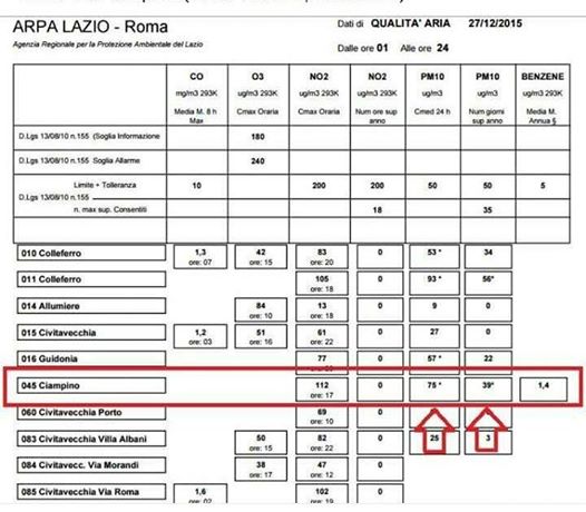 Dati inquinamento Arpa Lazio