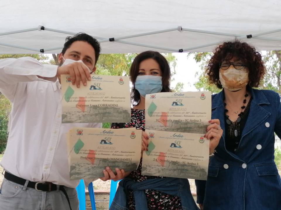 Ieri mattina, presso parco Rielasingen, si è svolta la consegna degli attestati di partecipazione agli alunni delle classi elementari e medie dell’istituto comprensivo Ardea 3 che hanno dato il proprio contributo per la creazione del video “storico” per i primi cinquant’anni di vita di Ardea.La premiazione si è svolta a parco Rielasingen per mantenere un adeguato distanziamento tra i presenti.