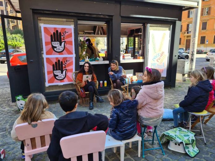 Città blu, Città gialla, un albo illustrato di Ljerka Rebrovic e Ivana Pipal, Terre di mezzo editore, uscito qualche anno fa, nel 2017, ma drammaticamente attuale alla luce della terribile guerra in Ucraina. Prendendo spunto da questo libro per bambini, Stefania Mariani – attrice, blogger esperta di letteratura per l’infanzia, mamma – con Francesca Ferrazzo – attrice, organizzatrice di eventi, mamma – e Serena Muzio – mamma, fondatrice, insieme a Francesca, dell’associazione Tri-bù che organizza eventi ludici e culturali per bambini – hanno proposto un delizioso incontro di lettura animata e conversazione sui temi della guerra, per insegnare la pace ai bambini.