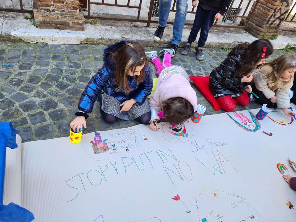 A questa riflessione e al dibattuto che ne è scaturito, a cui i bambini hanno partecipato con attenzione, trasporto ed entusiasmo, è seguito il momento del disegno, in cui i piccoli ospiti hanno manifestato la loro volontà di pace tra Ucraina e Russia.