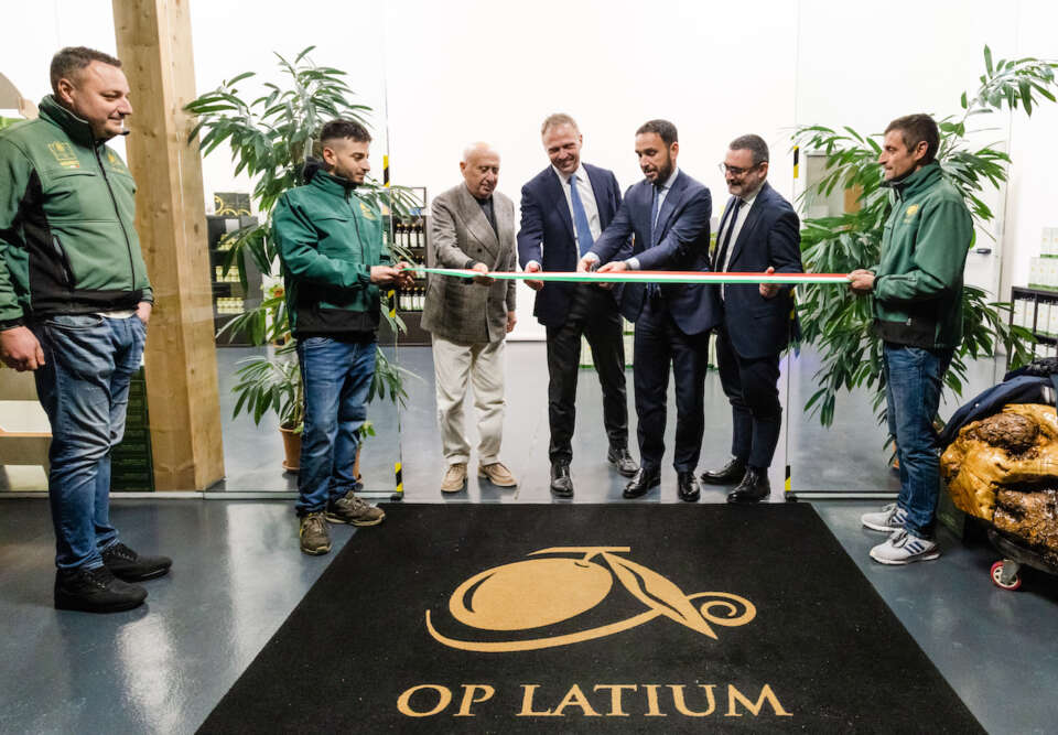 Taglio del nastro con il ministro dell’Agricoltura, Francesco Lollobrigida al frantoio “Colli Sabini” di Op Latium, l’Organizzazione di filiera dei produttori olivicoli del Lazio diretta da Francesco Bosio a Palombara Sabina.