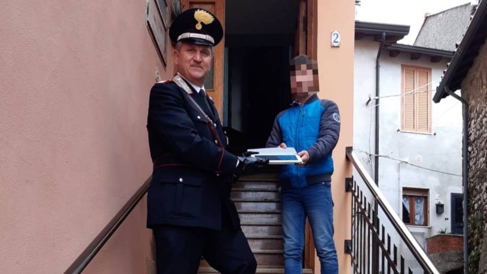 COLLEFERRO – I CARABINIERI CONSEGNANO TABLET A DUE GIOVANI STUDENTI PER SEGUIRE LE VIDEOLEZIONI DEL LORO PROF.