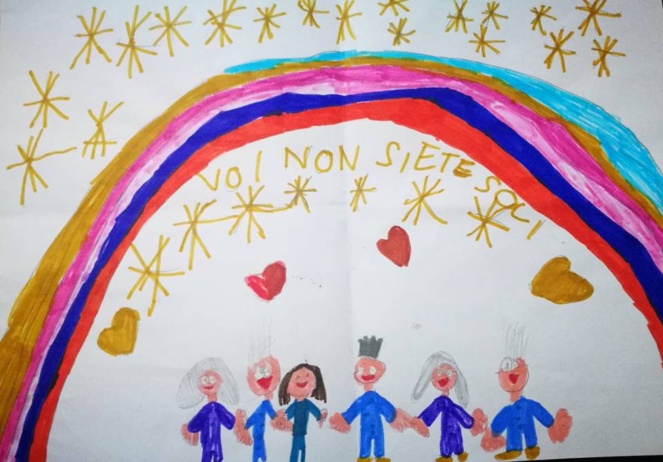 Lo dice bene Joy con le parole: “Cari nonni e nonne vi volevo dire che voi non siete soli ci siamo pure noi con voi” e raffigura questo pensiero nel suo disegno: gli anziani non sono soli i bambini sono loro accanto, tutti insieme sotto la stesso arcobaleno, tutti insieme… Forse occorre ascoltare questo “sogno” e farlo diventare il nostro progetto di vita””. Spiegano gli organizzatori