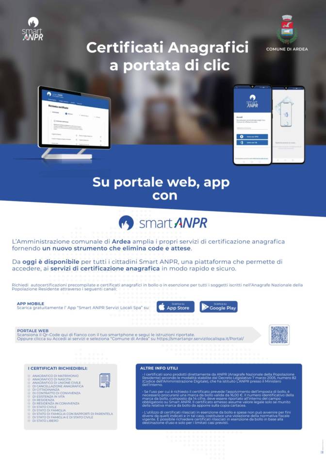 Link comune di Ardea: https://comune.ardea.rm.it/… /nuovo-servizio-smart-anpr…/