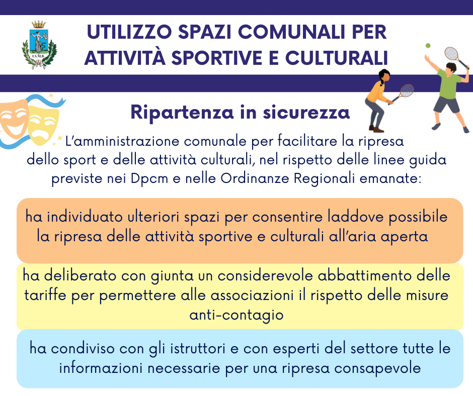 L’Amministrazione comunale di Lanuvio, per facilitare la ripresa dello sport e delle attività culturali, nel rispetto delle linee guida previste nei Dpcm e nelle Ordinanze Regionali emanate, ha deliberato alcune misure emergenziali per il periodo giugno-luglio 2020.