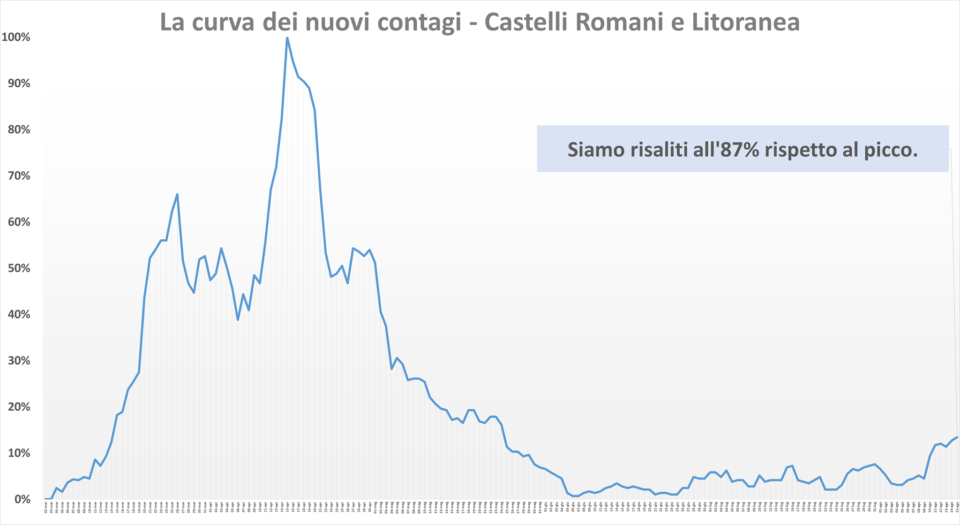 Rispetto al picco la curva dei nuovi contagi è risalita all’87%.