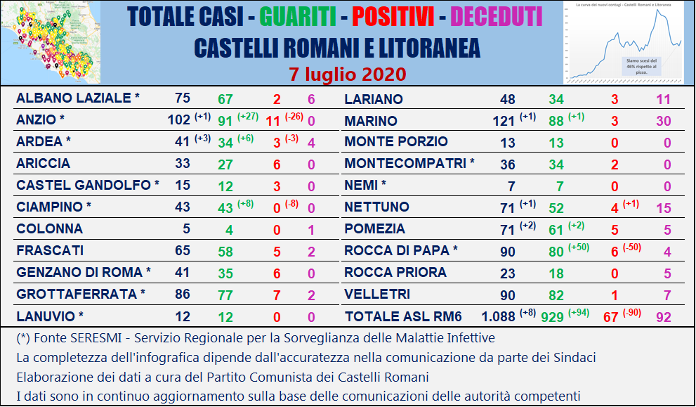 I Comunisti "Nella ASL RM6, che comprende i Castelli Romani e la Litoranea, il 7 luglio non si è registrato nessun nuovo caso".