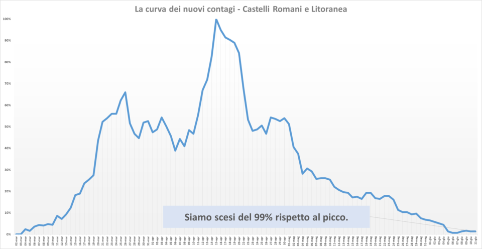 Nella tabella seguente viene riportata la ripartizione dei contagi per singolo comune dei Castelli Romani e della Litoranea sulla base delle comunicazioni ufficiali delle autorità competenti.