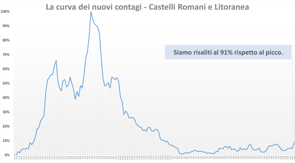 Nella Asl Roma 6, che comprende i Castelli Romani e la Litoranea, si registrano 15 nuovi casi nelle ultime 24 ore. Si tratta di un uomo di rientro dal Pakistan e di una donna di 35 anni di rientro dall’Ucraina. A questi casi si aggiungono 13 casi positivi registrati al Cas, il centro di accoglienza migranti di Rocca di Papa. Il numero complessivo dei guariti è stabile a 995, il numero delle persone attualmente positive è salito a 82 (+15), mentre il numero dei decessi è rimasto stabile a 92 casi. Rispetto al picco la curva dei nuovi contagi è risalita al 91%. Purtroppo dobbiamo rilevare che nei Castelli Romani e litoranea il covid circola liberamente e pericolosamente. Purtroppo non tutto è andato bene.