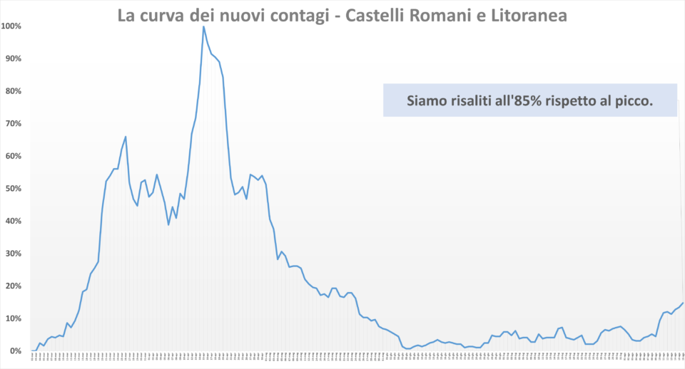 Rispetto al picco la curva dei nuovi contagi sta pericolosamente risalendo (è risalita all’85%).