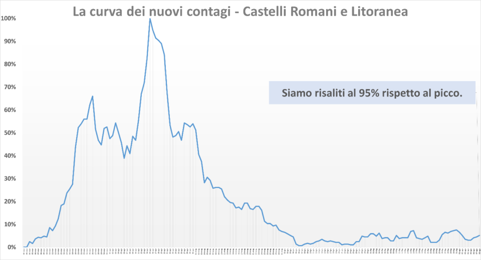 Nella Asl Roma 6, che comprende i Castelli Romani e la Litoranea, si registrano altri 2 nuovi casi nelle ultime 24 ore. Nessun Sindaco ha comunicato nulla in merito. Il numero complessivo dei guariti è stabile a 995, il numero delle persone attualmente positive è salito a 66 (+2), mentre il numero dei decessi è rimasto stabile a 92 casi. Rispetto al picco la curva dei nuovi contagi è risalita al 95%. Purtroppo dobbiamo rilevare che nei Castelli Romani e litoranea il covid circola liberamente e pericolosamente. Purtroppo non tutto è andato bene.