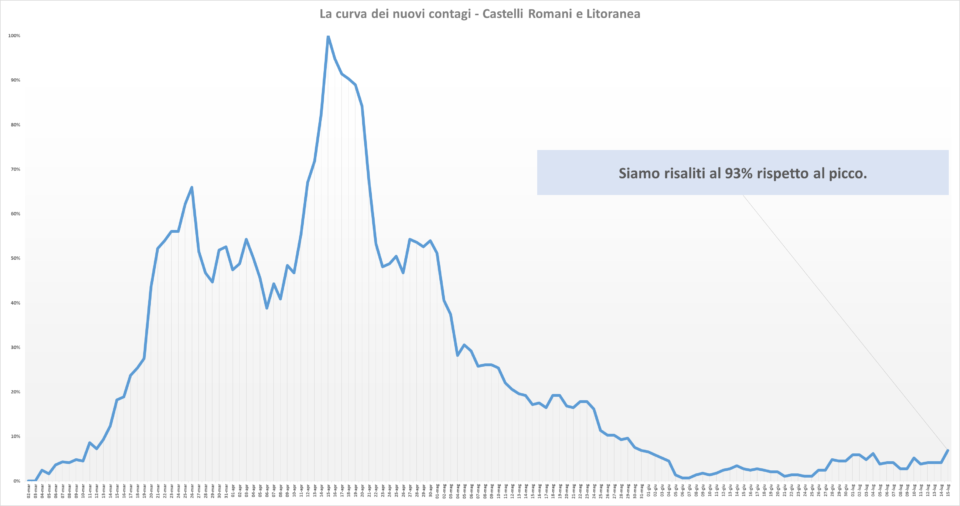 Rispetto al picco la curva dei nuovi contagi è pericolosamente risalita al 93%.