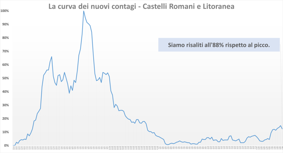 Rispetto al picco la curva dei nuovi contagi sta pericolosamente risalendo (è risalita all’88%).