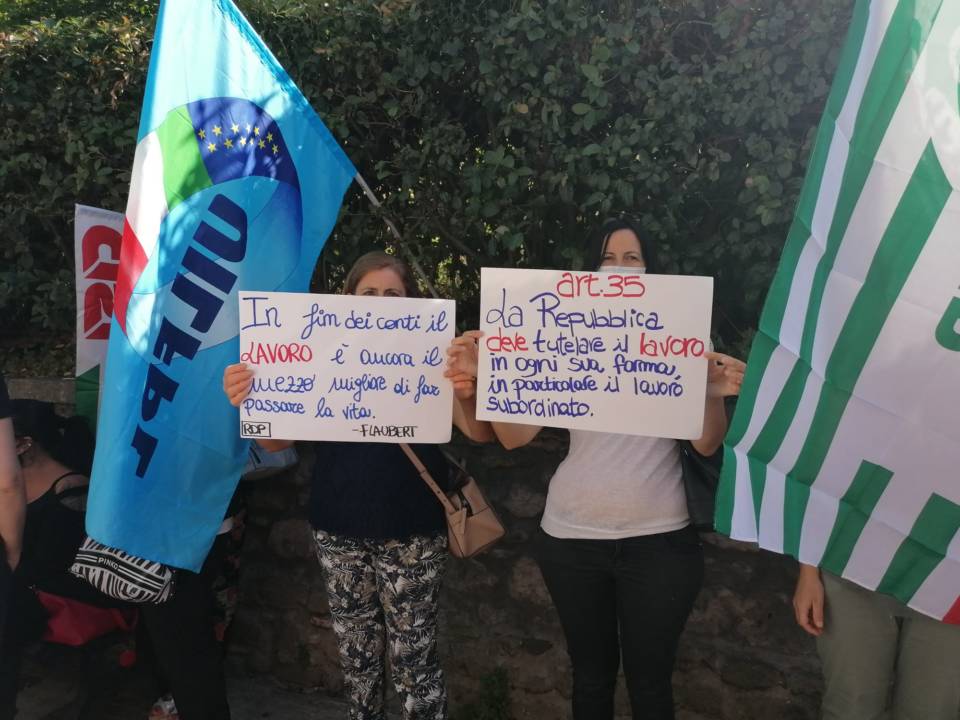 Concludiamo questo articolo con quanto riportato in uno dei cartelli preparati dai lavoratori per la manifestazione: «L’Italia è una Repubblica democratica, fondata sul lavoro. La sovranità appartiene al popolo, che la esercita nelle forme e nei limiti della Costituzione».