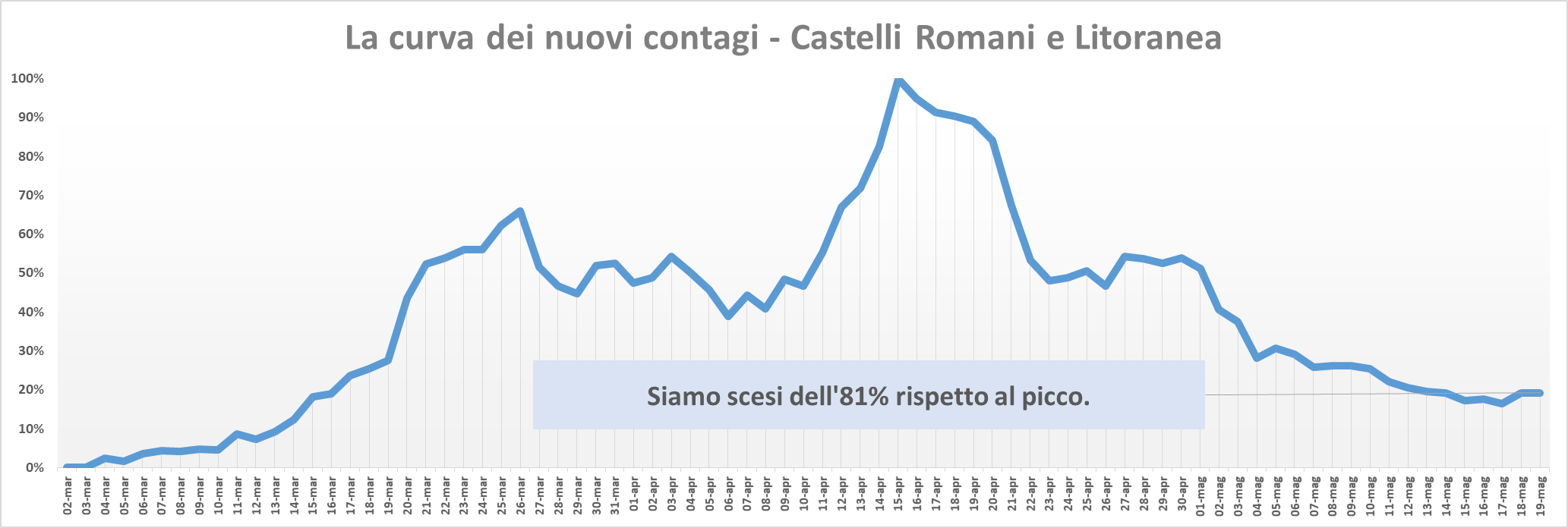Nella tabella seguente viene riportata la ripartizione dei contagi per singolo comune dei Castelli Romani e della Litoranea sulla base delle comunicazioni ufficiali delle autorità competenti.