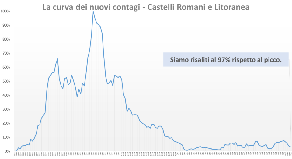 Nella Asl Roma 6, che comprende i Castelli Romani e la Litoranea, nessun nuovo caso nelle ultime 24 ore. Il numero complessivo dei guariti è salito a 994 (+17), il numero delle persone attualmente positive è sceso a 57 (-17), mentre il numero dei decessi è rimasto stabile a 92 casi. Rispetto al picco la curva dei nuovi contagi è pericolosamente risalita al 97%. Purtroppo dobbiamo rilevare che nei Castelli Romani e litoranea il covid circola liberamente e pericolosamente. Purtroppo non tutto è andato bene.