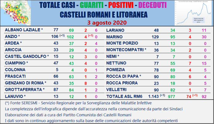 In assenza di comunicazioni ufficiali dei Sindaci e della ASL RM6, dobbiamo aspettare l’aggiornamento dati del SERESMI previsto per ogni martedì.