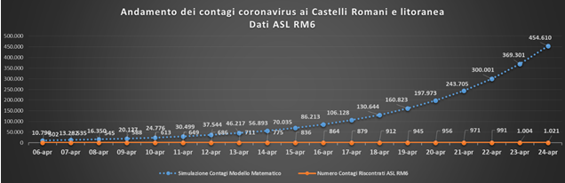 Nella ASL RM6, che comprende i Castelli Romani e la Litoranea, il 24 aprile il numero dei positivi è salito a 1.021, con altri 17 nuovi casi.
