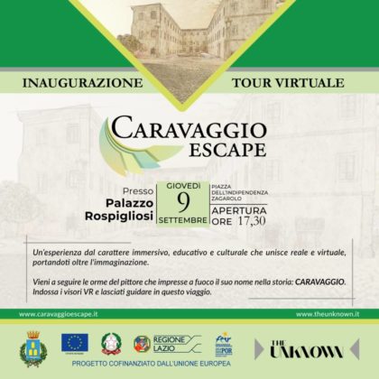 “Giovedì 9 Settembre, alle ore 17.30, a Palazzo Rospigliosi (Piazza Indipendenza 6, Zagarolo) sarà inaugurato il progetto “Zagarolo Escape”, un “tour virtuale” in cui il visitatore, indossando dei visori VR, avrà la possibilità di seguire Caravaggio negli episodi principali della sua vita e fuggire con lui a Zagarolo.