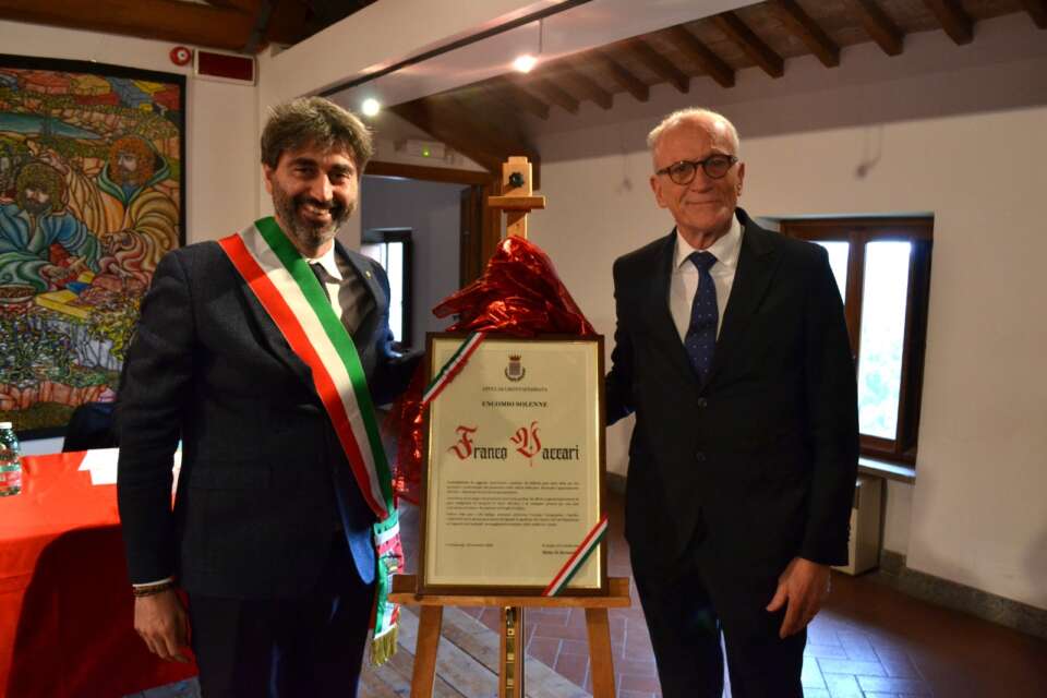“Anche se quello di oggi è solo un piccolo passo di fronte a un tema così significativo e impattante come quello della pace nel mondo, contrapposto a quello della guerra e delle atrocità che porta con sé, abbiamo voluto che anche Grottaferrata desse un segnale forte di volontà per l’affermazione di una nuova cultura della pace – ha detto il Sindaco Mirko Di Bernardo in apertura –. Il prof. Vaccari ha rivoluzionato l’agire classico di ospitalità, ponendo nello stesso luogo ragazzi e ragazze da paesi belligeranti tra loro, creando un circolo virtuoso del bene, basato su condivisione, ascolto e dialogo. Per promuovere tale azioni, ma soprattutto per rendere contagiosi i profondi sentimenti che l’hanno animata, abbiamo deciso come Amministrazione di conferire l’Encomio Solenne a Franco Vaccari, che ringrazio per aver condiviso la sua esperienza con la nostra città”.