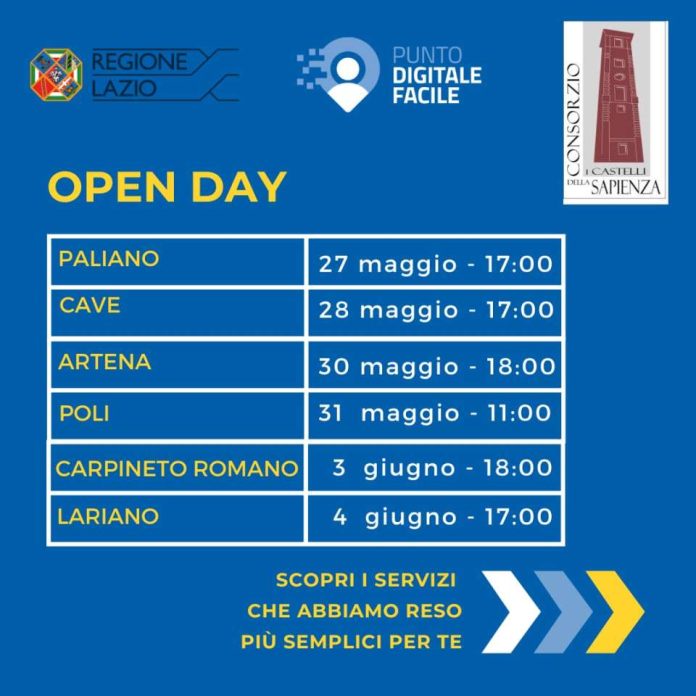 AL VIA LUNEDÌ 27 MAGGIO I CENTRI DI FACILITAZIONE DIGITALE DEI COMUNI DEI CASTELLI ROMANI ADERENTI AL CONSORZIO DEI CASTELLI DELLA SAPIENZA