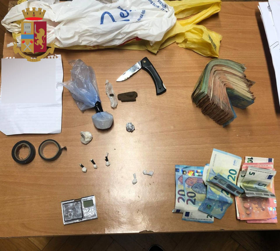 Gli uomini del Comm.to Borgo diretto da Liliana Galiani, durante un posto di controllo in piazzale degli Eroi hanno arrestato L.G., 25enne italiano che viaggiava a bordo della sua autovettura in compagnia di un altro uomo. Da subito l’atteggiamento dei due soggetti, nervoso ed agitato, ha insospettito i poliziotti. Risposte vaghe e contraddittorie circa i loro spostamenti in città hanno indotto gli agenti a procedere ad un controllo dei due uomini. Con precedenti di polizia e gravato da due recenti denunce in stato di liberta per reati inerenti gli stupefacenti il passeggero, mentre nessun precedente di polizia è risultato per il conducente, proprietario dell’autovettura. All’interno dell’auto, nel vano portaoggetti del bracciolo dei sedili posteriori è stato rinvenuto un involucro in plastica trasparente termosaldata, e al suo interno altre buste di plastica trasparenti, oltre ad un involucro di carta contenente sostanza erbacea, risultata successivamente, con apposito narcotest, essere marijuana. Nello stesso portaoggetti è stato ritrovato un coltello da cucina con una lama seghettata di 25 cm e un coltellino multiuso, entrambi con inequivocabili segni di sostanza adesa, tipo hashish. Sotto il sedile del conducente sono stati trovati 200 euro in banconote di vario taglio. Presso gli uffici di Polizia, dove i due uomini sono stati accompagnati per gli accertamenti di rito, gli agenti procedevano all’apertura degli involucri che confermavano la presenza di due bustine di marijuana del peso complessivo di circa 30 gr. e una busta contenente 62 gr. di hashish.