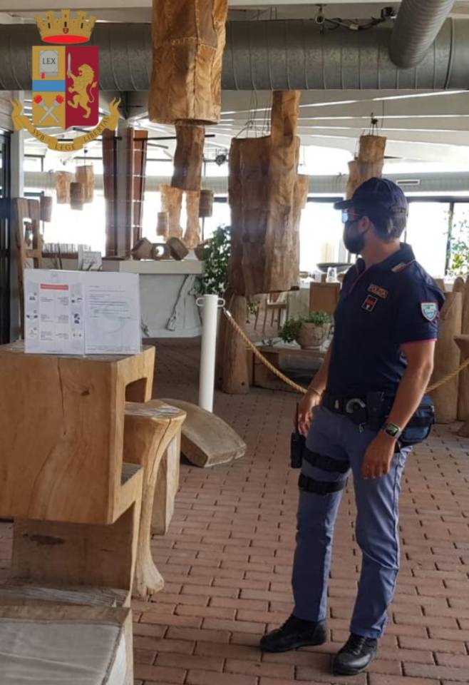 Durante il servizio, i poliziotti hanno verificato che gli avventori accedessero nei locali previo controllo della temperatura corporea e sanificazione delle mani. Tale attività è stata effettuata anche con l’impiego di vigilanti privati assunti dai gestori, tale da evitare accessi abusivi o sregolati sulla spiaggia.