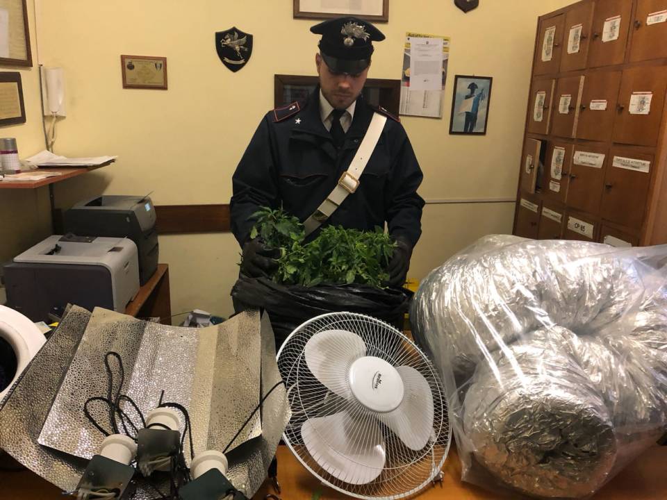 Dopo un prolungato servizio di osservazione svolto tra il territorio di Colonna e San Cesareo, i Carabinieri sono intervenuti in un’abitazione di via degli Olmi e, a seguito della perquisizione personale e domiciliare, hanno appurato, nel sottotetto dell’abitazione, l’esistenza di un vero e proprio laboratorio artigianale di produzione di “Marijuana”, sequestrando due piccole serre con all’interno quaranta piante di “marijuana”, alte circa 150cm cad., lampade alogene, pannelli foto-riflettenti, sistema di ventilazione e di irrigazione. Durante l’operazione è stato rinvenuto, all’interno di un mobile del soggiorno, un ulteriore involucro di 36 grammi di marijuana.