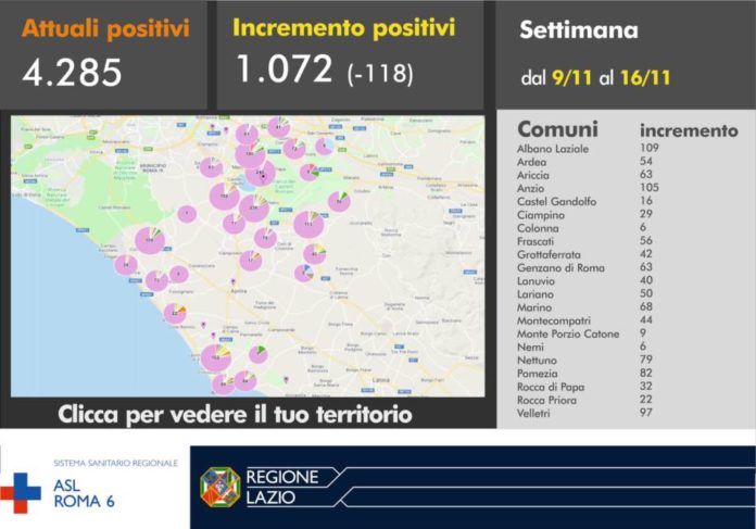 Coronavirus, 153 nuovi casi positivi e 5 decessi il 17 Novembre in Asl Roma 6