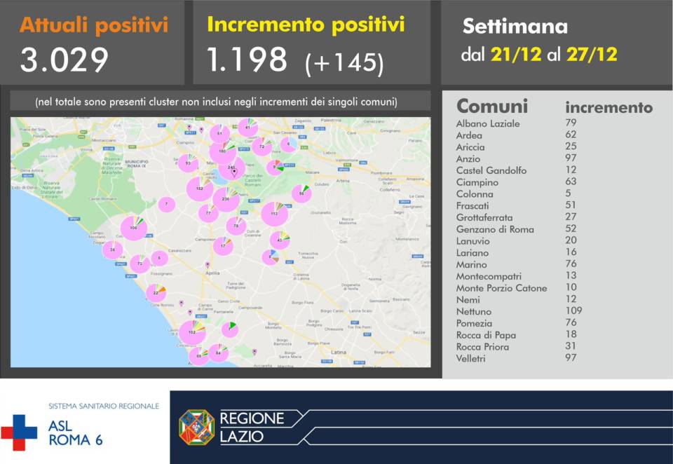 Coronavirus, 175 nuovi casi positivi e 8 decessi il 28 Dicembre in Asl Roma 6