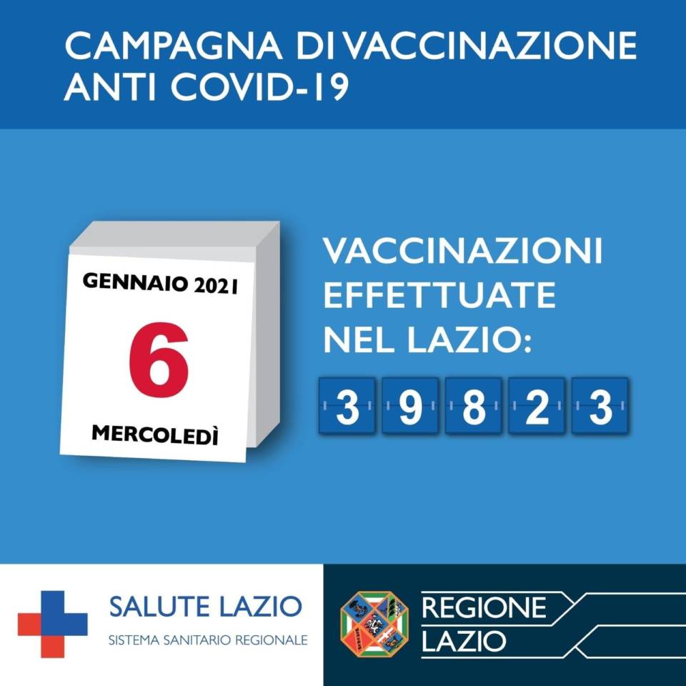 Il valore RT sale ma rimane di poco sotto l’1. Prevediamo un peggioramento della curva. Oggi abbiamo un’onda che si alza come era prevedibile ed occorre massimo rigore e cautela. Nella Asl Roma 1 sono 503 i casi nelle ultime 24h e si tratta di casi isolati a domicilio o con link familiare o contatto di un caso già noto. Si registrano sei decessi di 48, 49, 68, 71, 78 e 79 anni con patologie. Nella Asl Roma 2 sono 235 i casi nelle ultime 24h e si tratta di casi isolati a domicilio o con link familiare o contatto di un caso già noto. Centotre sono i casi su segnalazione del medico di medicina generale. Si registrano dodici decessi di 62, 66, 72, 73, 76, 80, 81, 82, 85, 87, 89 e 94 anni con patologie. Nella Asl Roma 3 sono 230 i casi nelle ultime 24h e si tratta di casi isolati a domicilio o con link familiare o contatto di un caso già noto. Otto casi sono ricoveri. Si registrano quattro decessi di 66, 78, 80 e 96 anni con patologie. Nella Asl Roma 4 sono 56 i casi nelle ultime 24h e si tratta di casi isolati a domicilio o con link familiare o contatto di un caso già noto. Nella Asl Roma 5 sono 125 i casi nelle ultime 24h e si tratta di casi isolati a domicilio o con link familiare o contatto di un caso già noto. Si registra un decesso 92 anni con patologie. Nella Asl Roma 6 sono 207 i casi nelle ultime 24h e si tratta di casi isolati a domicilio o con link familiare o contatto di un caso già noto. Si registrano cinque decessi di 77, 79, 82, 85 e 92 anni con patologie. Nelle province si registrano 651 casi e sono nove i decessi nelle ultime 24h. Nella Asl di Latina sono 312 i nuovi casi e si tratta di casi isolati a domicilio o con link familiare o contatto di un caso già noto. Si registrano cinque decessi di 68, 74, 92, 97 e 98 anni con patologie. Nella Asl di Frosinone si registrano 209 nuovi casi e si tratta di casi isolati a domicilio, contatti di un caso già noto o con link familiare. Si registrano tre decessi di 56, 75 e 87 anni con patologie. Nella Asl di Viterbo si registrano 44 nuovi casi e si tratta di casi isolati a domicilio o con link familiare o contatto di un caso già noto. Si registra un decesso di 86 anni con patologie. Nella Asl di Rieti si registrano 86 casi e si tratta di casi isolati a domicilio o con link familiare o contatto di un caso già noto”. Lo rendono noto Salute Lazio e Regione Lazio mercoledì 6 gennaio.