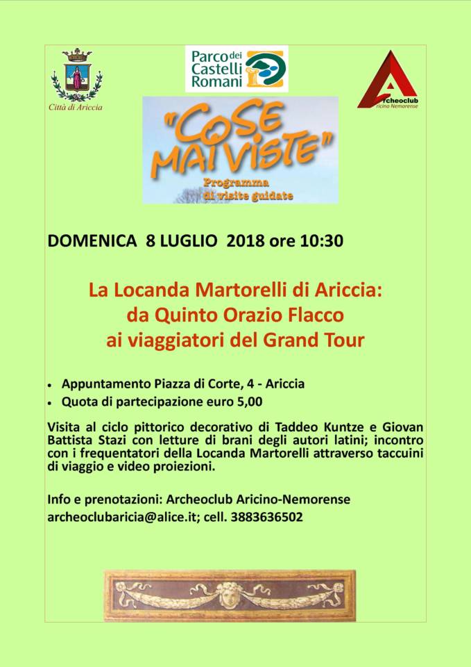 Visita al ciclo pittorico decorativo di Taddeo Kuntze e Giovan Battista Stazi con letture di brani degli autori latini; incontro con i frequentatori della Locanda Martorelli attraverso taccuini di viaggio e video proiezioni.