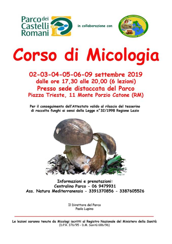 Torna a settembre il Corso di Micologia inserito nel programma “Cose Mai Viste” 2019. Obiettivo del corso è consentire ai partecipanti di acquisire le basi della conoscenza dell’ambiente del Parco dei Castelli Romani, in particolare attraverso lezioni di micologia, ed in generale di conoscenza dell’ambiente naturale nella sua complessità. Al termine del corso verrà rilasciato ai partecipanti un attestato di formazione micologica con il quale poter richiedere il patentino raccolta funghi epigei spontanei. Il corso verrà condotto da esperti naturalisti.
