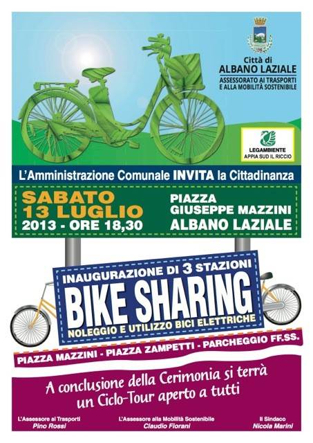 Finalmente dopo un lungo percorso autorizzativo e burocratico durato circa un anno e dopo una prima fase di promozione e incentivazione iniziata nei primi giorni di luglio, sabato 13 luglio alle 18.30 a piazza Mazzini ad Albano Laziale avverrà l’inaugurazione della rete delle stazioni bike sharing (noleggio e utilizzo delle biciclette elettriche) del Comune di Albano Laziale alla presenza delle autorità cittadine.