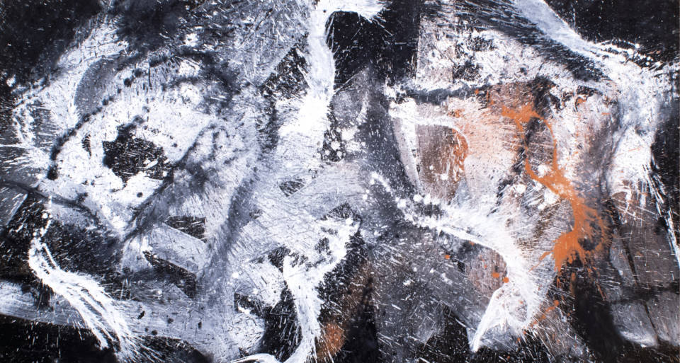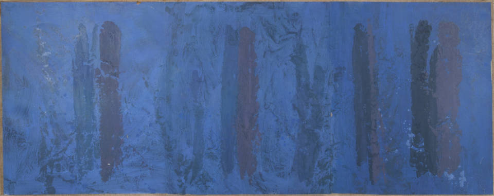 Durante l’estate del 1957, nella sua casa a Procida, un colpo di vento rovescia casualmente sulla tela bianca una carta impregnata di colore: nasce la fortunata serie delle Impronte. Per Scialoja è una rivoluzione, è il superamento del dripping e dell’action painting. Scrive nel suo Giornale di Pittura: “Stampare è come riprodurre dal di dentro una luce di lampo che illumina tutte insieme le cose dell’immagine”.